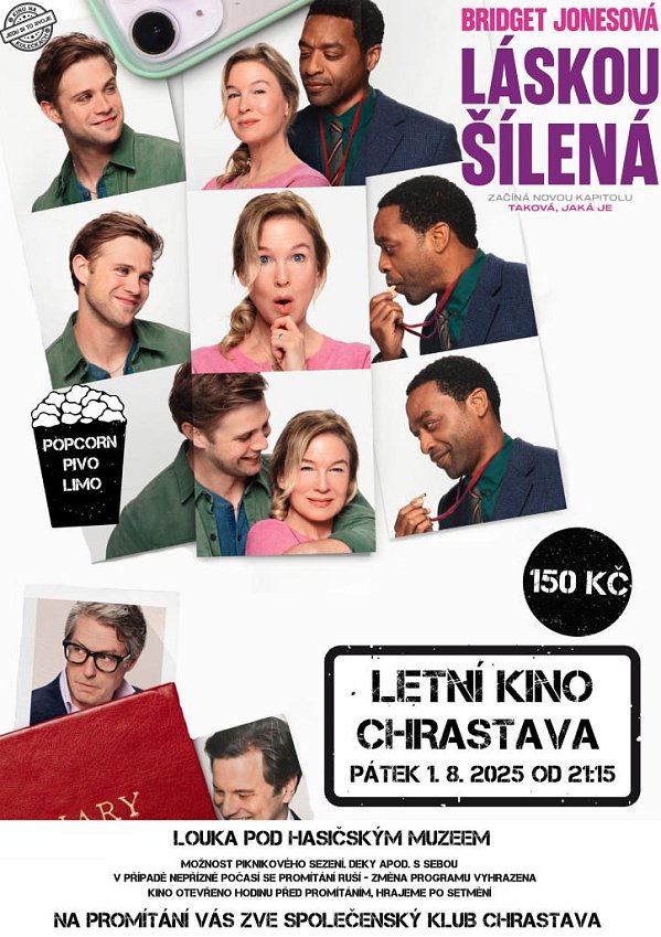 Chrastava přivítá letní kino s filmem Bridget Jonesová: Láskou šílená. Promítáme