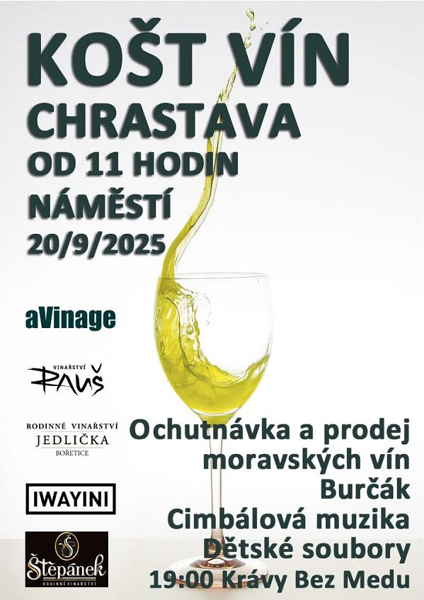 Zveme Vás na KOŠT VÍN v sobotu 20. 9. od 11:00 hod. na náměstí.